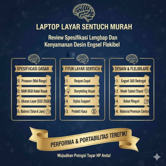Laptop layar sentuh murah kini semakin populer di kalangan pelajar, mahasiswa, hingga pekerja kantoran yang membutuhkan perangkat serbaguna dengan harga terjangkau. Kombinasi fitur touchscreen dan desain modern membuat perangkat ini mampu menggantikan fungsi laptop sekaligus tablet. Dengan harga yang semakin kompetitif, konsumen bisa menikmati pengalaman navigasi lebih praktis tanpa harus mengeluarkan biaya besar.